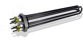 ):是采用U型管狀電熱元件,依據(jù)加熱不同介質(zhì)設(shè)計(jì)規(guī)范,按照功率配置要求裝配在法蘭蓋上,插入需加熱物料中,發(fā)熱元件工作時(shí)所發(fā)出的大量熱量傳導(dǎo)給被加熱介質(zhì)使介質(zhì)溫度升高,達(dá)到所需的工藝要求。當(dāng)介質(zhì)溫度達(dá)到工藝要求的設(shè)定值時(shí),控制系統(tǒng)根據(jù)溫度傳感器信號(hào),經(jīng)PID運(yùn)算后調(diào)節(jié)